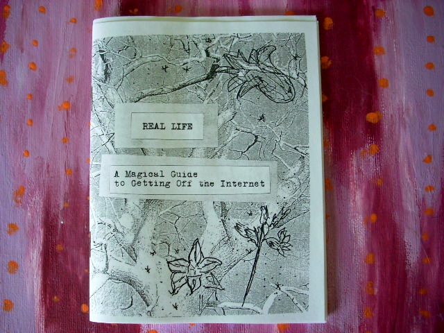 Real Life: A Magical Guide to Getting Off the Internet is a how-to and story-telling zine by me and my friend Dave Cave. We both realized we’d been spending way too much time online, and that we always ended up feeling worse when we wasted time on the internet. Sound familiar? Sometimes it seems like everyone is talking about spending less time on the internet, but they’re not actually just logging off and walking away. So this zine documents our attempts to do just that, and to encourage YOU to do the same.