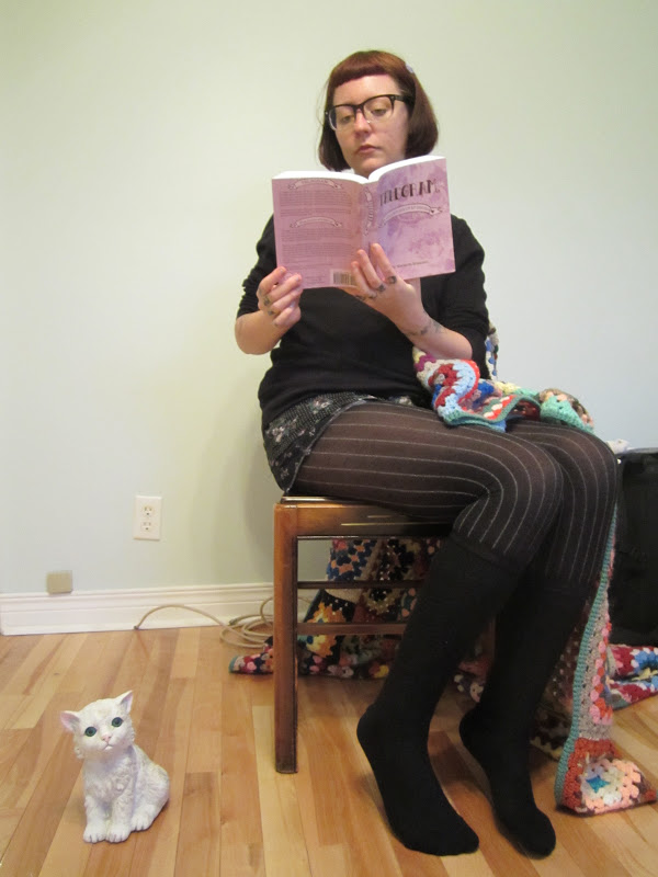 Yesterday, I held a book launch in my livingroom. The most honest story I can tell of the hours leading up to it is that I woke up not in the mood to be near anyone at all, I ran out of anxiety pills and settled for a Tylenol 3 instead, with a mug of coffee, and I made a row of twenty-seven cuts on my thigh in the bathroom after I got dressed. I felt like I was going to snap at everyone and cry my way through the reading. I took my sweet time in the shower, on the brink of tears, and hid in my bedroom, sending texts to my sister downstairs to please bring me water and pills. I felt better when Clara Bee arrived, but continued to feel unsettled throughout the entire event. I did finally burst into tears as I was reading; it was another moment where I read something I wrote five years ago, realized I have exactly the same problems today and am writing so much of the same stuff today, and felt like a total failure, unable to take care of myself or change things.