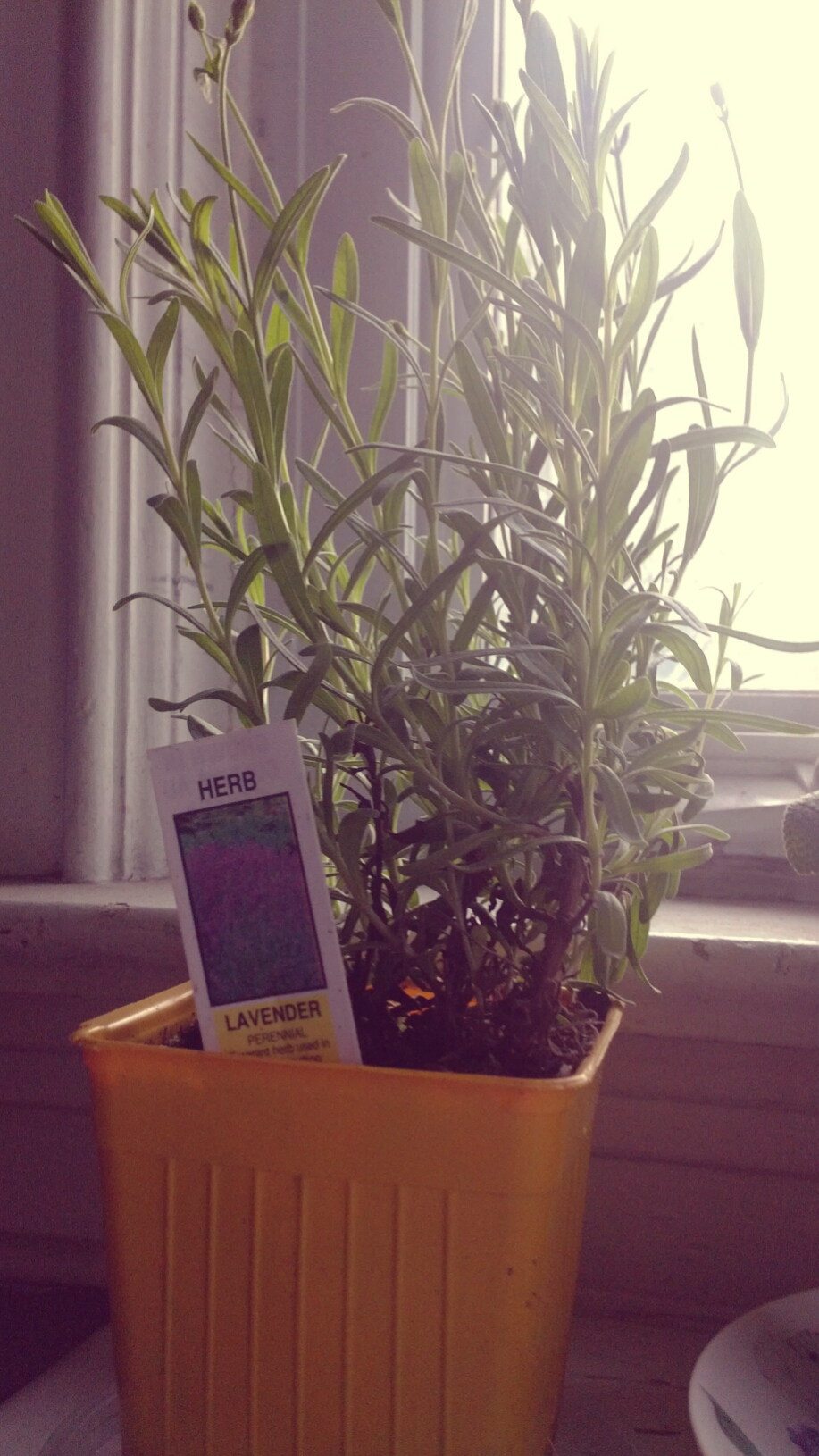 4. Iced soy lattés, Sharpies, purple pencil crayons. 2. Fucshia flowers I brought home with me. 3. My little lavender plant.